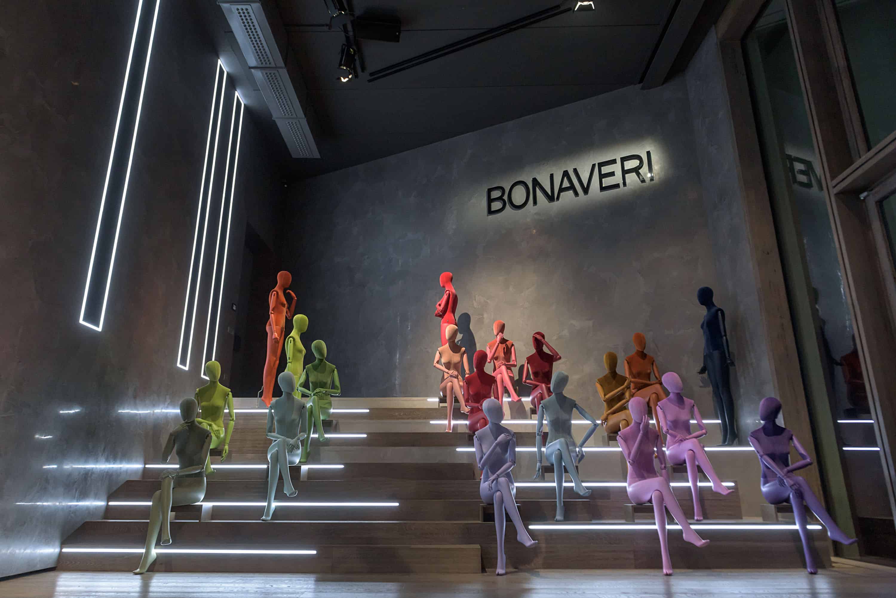 BonaveriMilano accueille cette installation à l’occasion de la Fashion Week automne-hiver 2019/2020 de Milan. Elle se mêle à la collection permanente de mannequins Bonaveri, Schläppi et Tribe ainsi qu’aux bustes