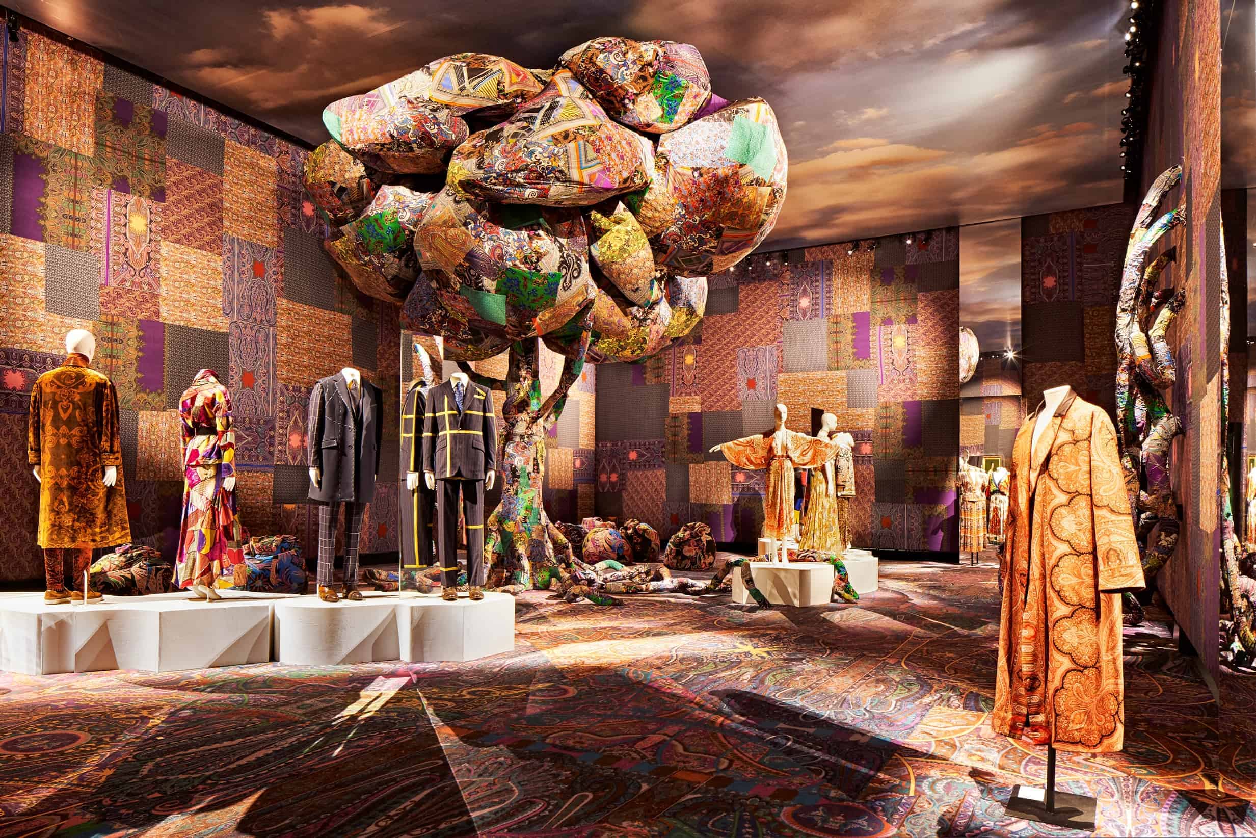 Le parcours commence par la création de tissus et évolue avec la naissance d'un style très personnel à l'identité forte. Paisley, considéré comme l’arbre de vie, est la pierre angulaire de la production d’Etro, un symbole facile à reconnaître.