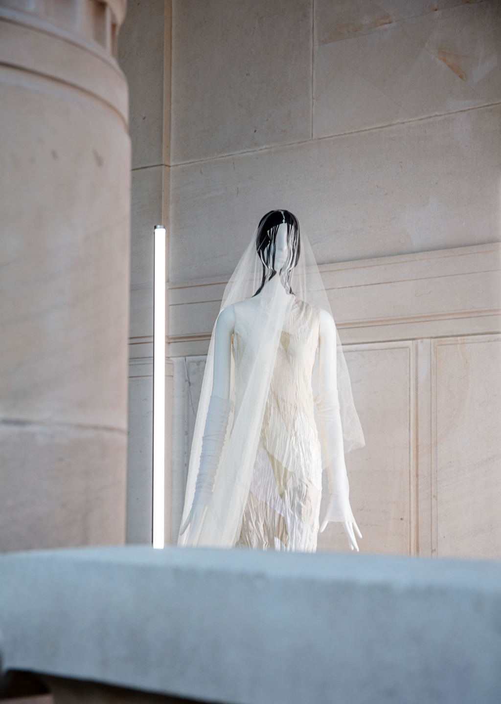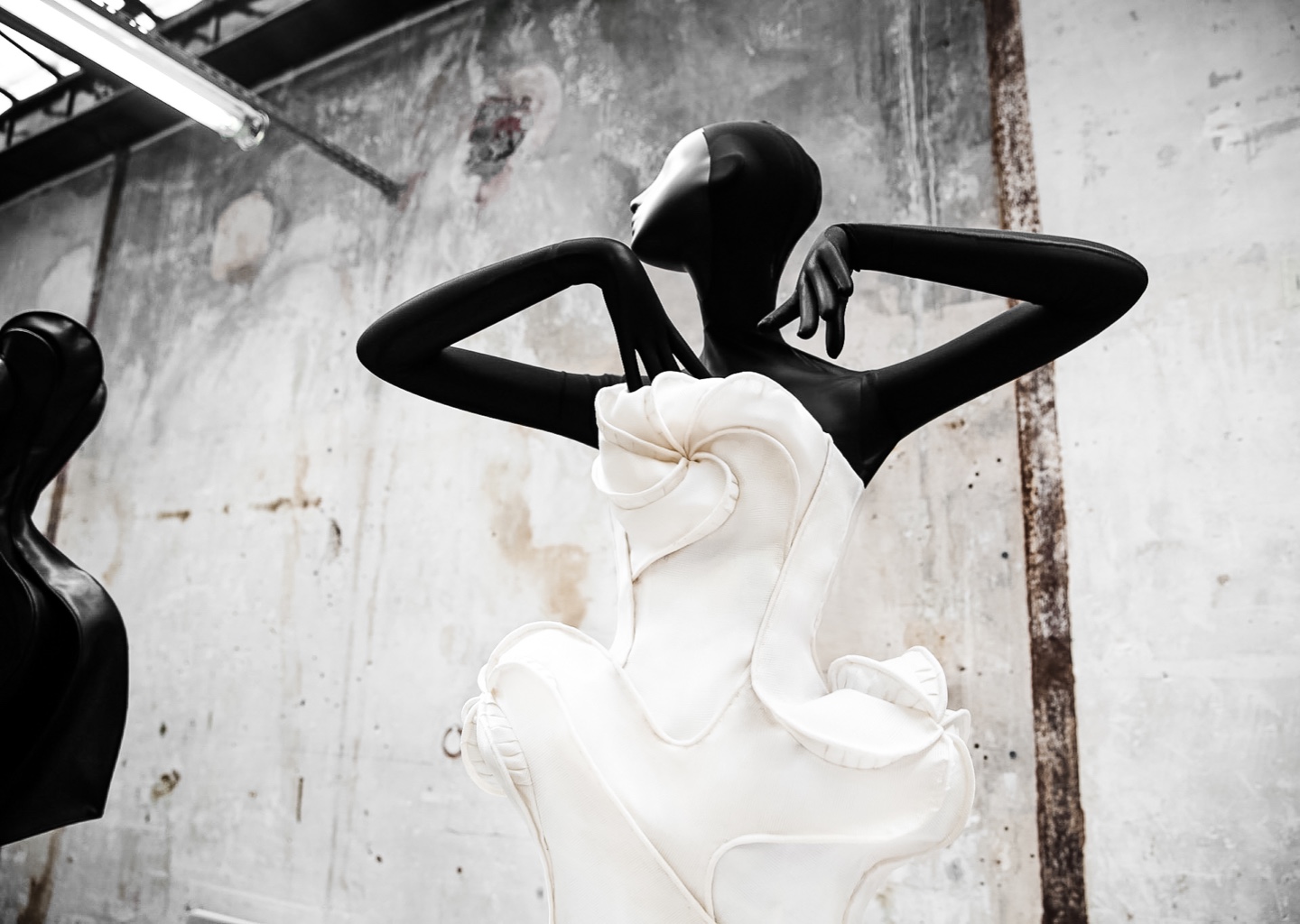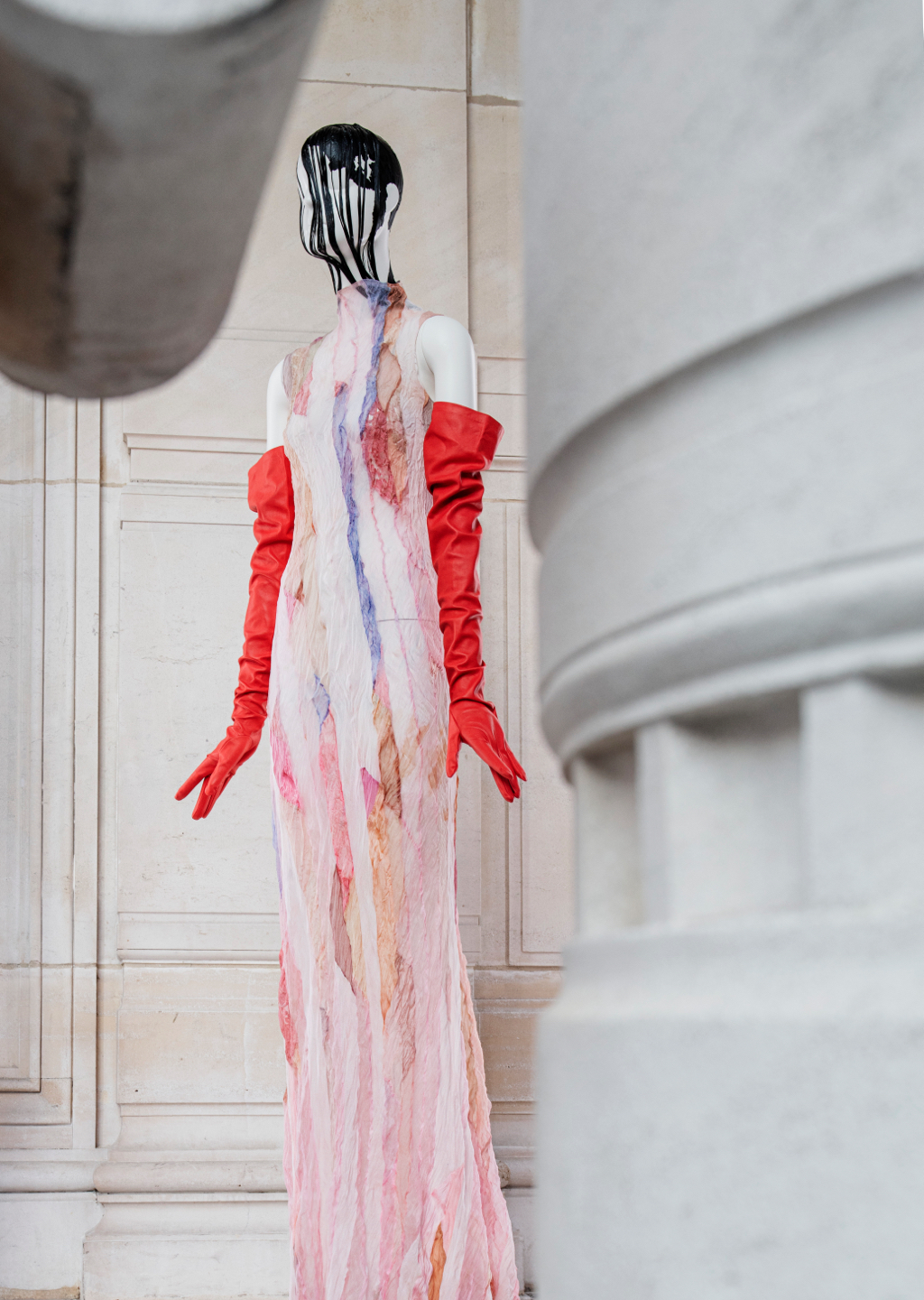 Présentation de la collection Haute Couture printemps-été 22 d'Olivier Theyskens lors de la Semaine de la mode de Paris avec les mannequins Schläpp 6000 « Aloof » de Bonaveri.