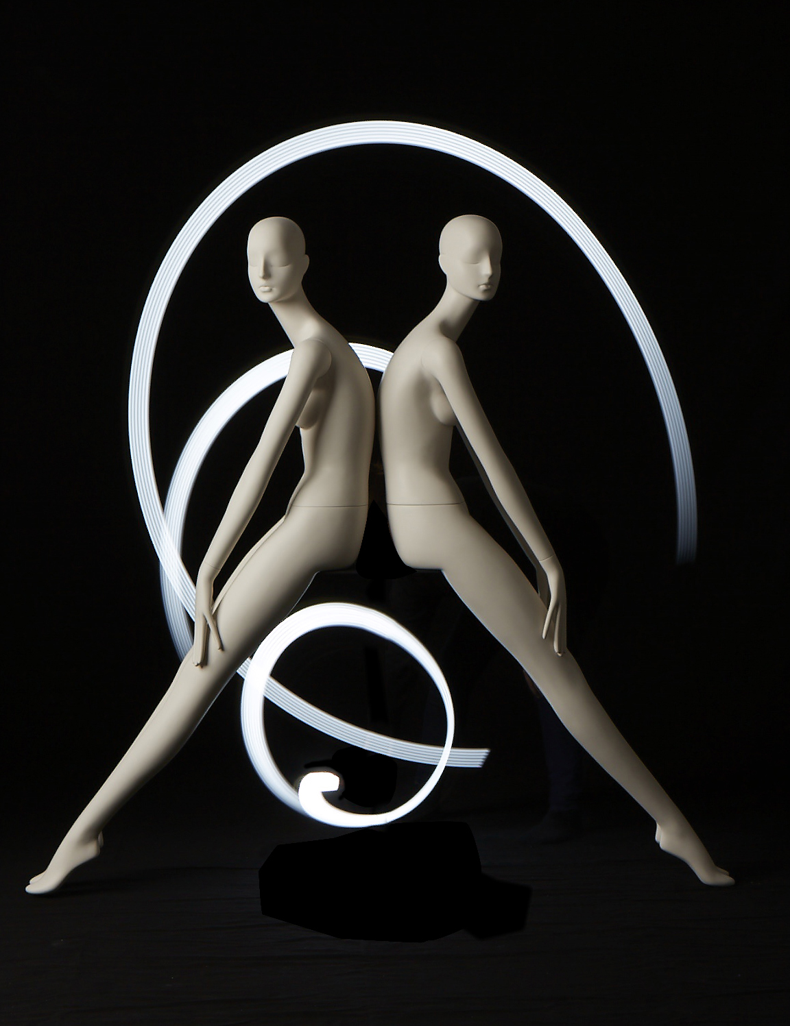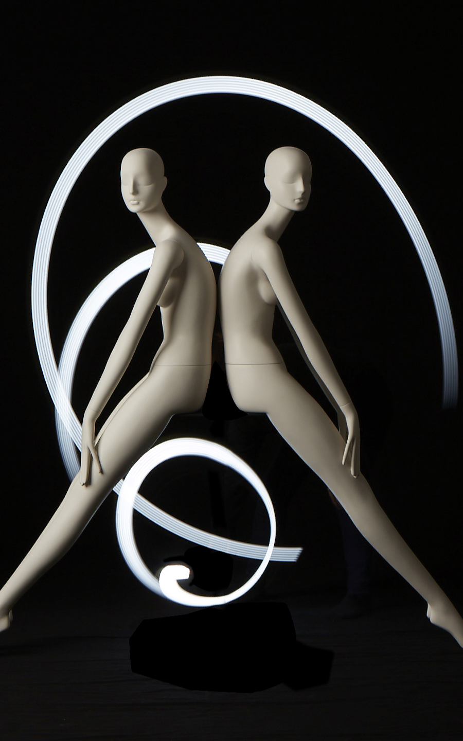 Emma: Avec Aloof, j'avais une obsession pour les jumeaux. J'étais une frustrée de la symétrie depuis le début de ma carrière, je ne la trouvais nulle part: si je voulais deux mannequins dos à dos, on leur ferait regarder le mur et non la rue ou la galerie. Alors avec Aloof nous avons rendu possible cette symétrie.