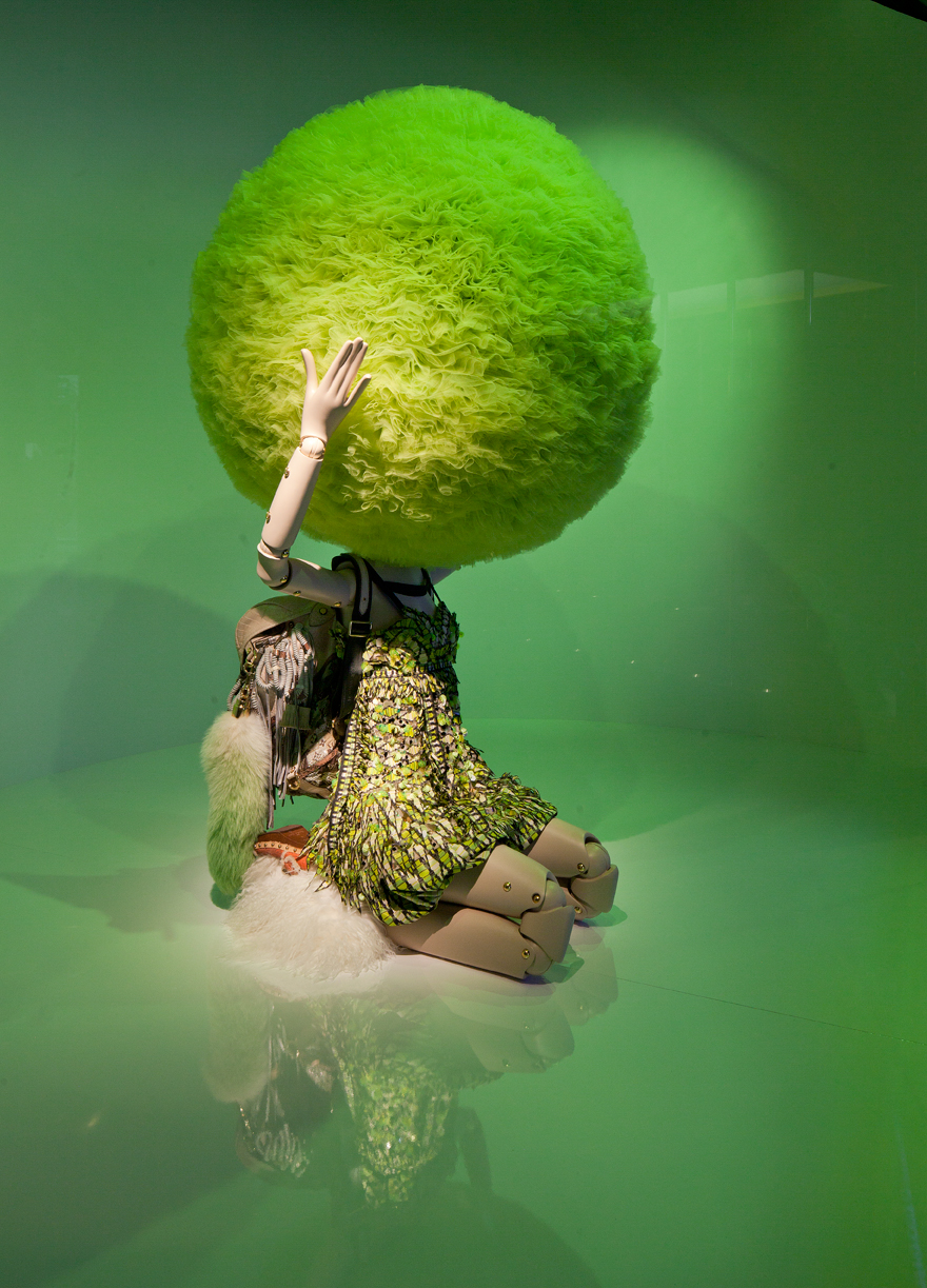 Elle avait une variété de têtes, fabriquées à Londres par mon sculpteur: des têtes d'animaux, une tête de fumée, une tête ballon, une tête boule disco. Il y avait beaucoup de têtes incroyables et décalées qui étaient faites sur mesure. Et puis c'était la collaboration qui a rassemblé tout le monde. Marco [Marco Furlani, sculpteur de Bonaveri] est venu à Paris et il a dû nous aider à les assembler car nous n'en avions jamais installé de semblables!